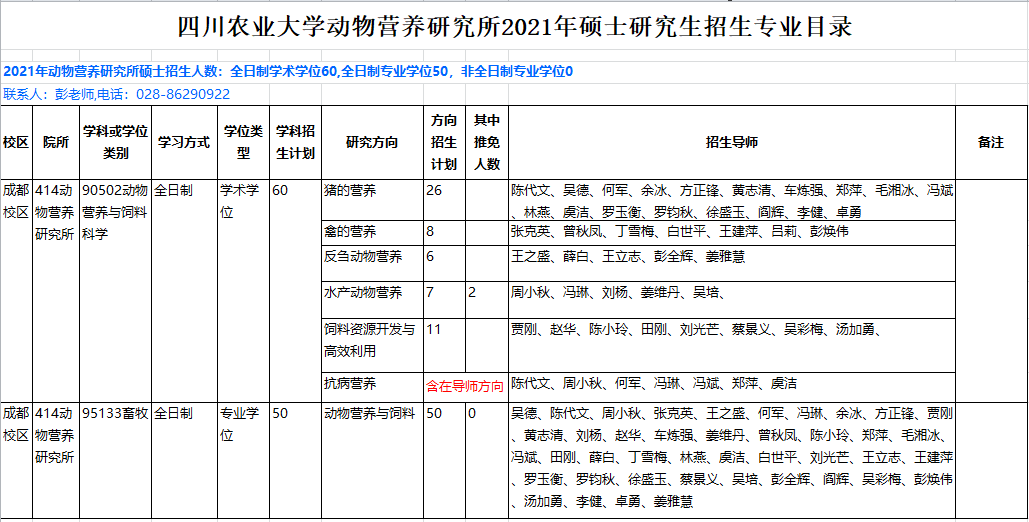 2138cn太阳城集团动物营养研究所2021年硕士研究生招生专业目录