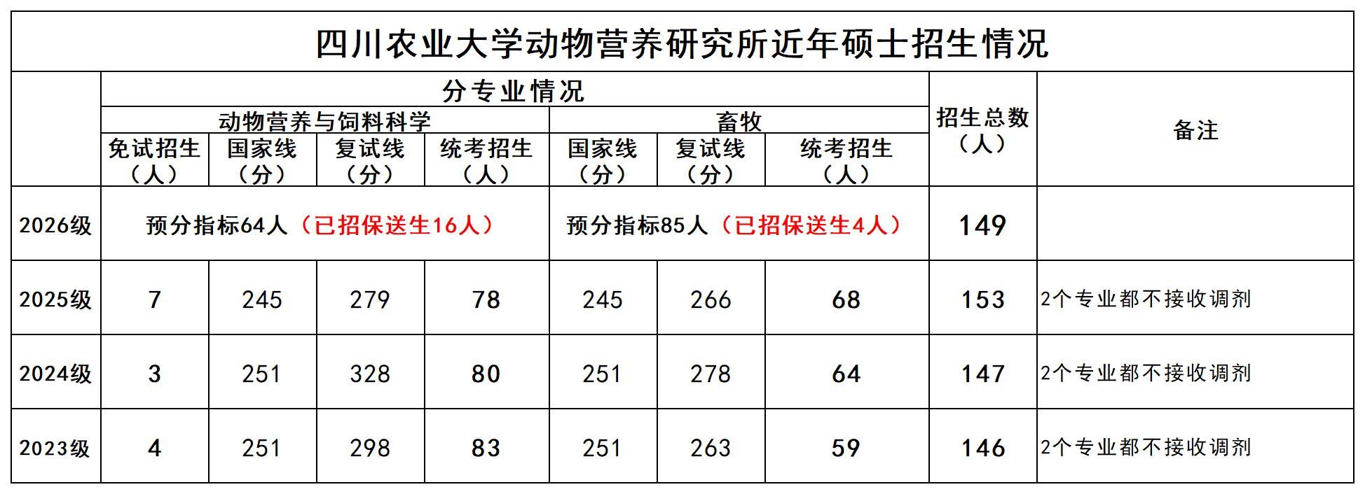 2138cn太阳城集团动物营养研究所近年硕士招生情况(2023-2026年)