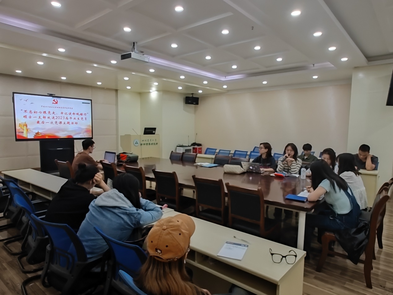 今年是中国共产党成立102周年,是全面贯彻落实党的二十大精神的开局之年,是全党开展学习贯彻习近平新时代中国特色社会主义思想主题教育之年。为筑牢毕业生党员的初心和使命,让青年学子在中华民族伟大复兴的征程中勇担大任,硕士研究生第一党支部于5月23日开展“不忘初心跟党走,牢记使命砥砺行”——2023届毕业生党员最后一次党课主题活动。