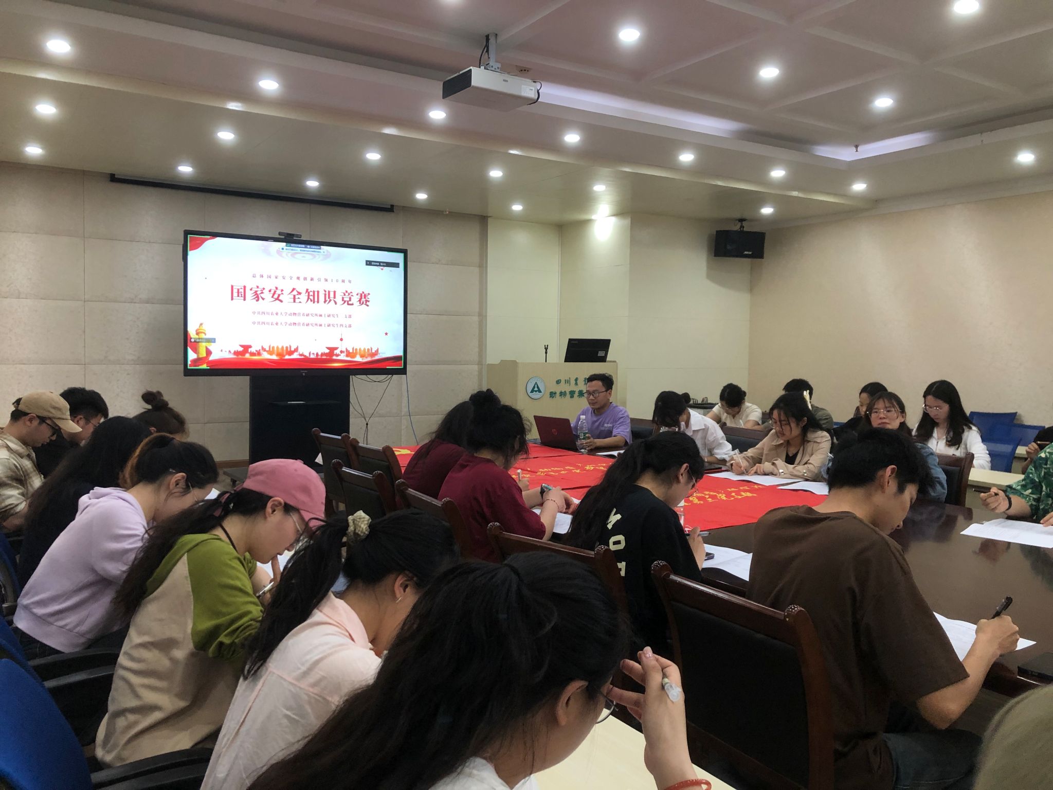2138cn太阳城集团动物营养研究所硕士第三、四党支部为积极响应学校“总体国家安全观创新引领10周年”主题学习活动号召,于4月16日13:00在6教9楼会议室联合举办了一场别开生面的知识竞赛活动。