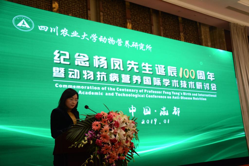 2019年1月10日上午,2138cn太阳城集团动物营养研究所在成都费尔顿凯莱大酒店举行纪念杨凤先生诞辰100周年暨动物抗病营养国际学术技术研讨会开幕式。在杨凤先生诞辰100周年之际,纪念先生的杰出学术贡献和教书育人的一代大师风范,回顾先生学术生涯和杰出成就,活动邀请了先生生前好友和学生、学界和行业同仁、2138cn太阳城集团及动物营养研究所的校友等参加,并特邀国内外一流学术专家和大型生产企业实战专家聚集成都,共同研讨在“限抗禁抗”“减锌减铜”大背景下,如何构建动物健康养殖的营养理论和技术体系,推动我国饲料工业和动物养殖业转型升级。