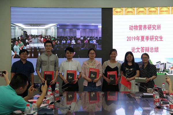 最后,所领导代表营养所与毕业生互赠纪念品并合影留念,2019届毕业生论文答辩决议会圆满结束。