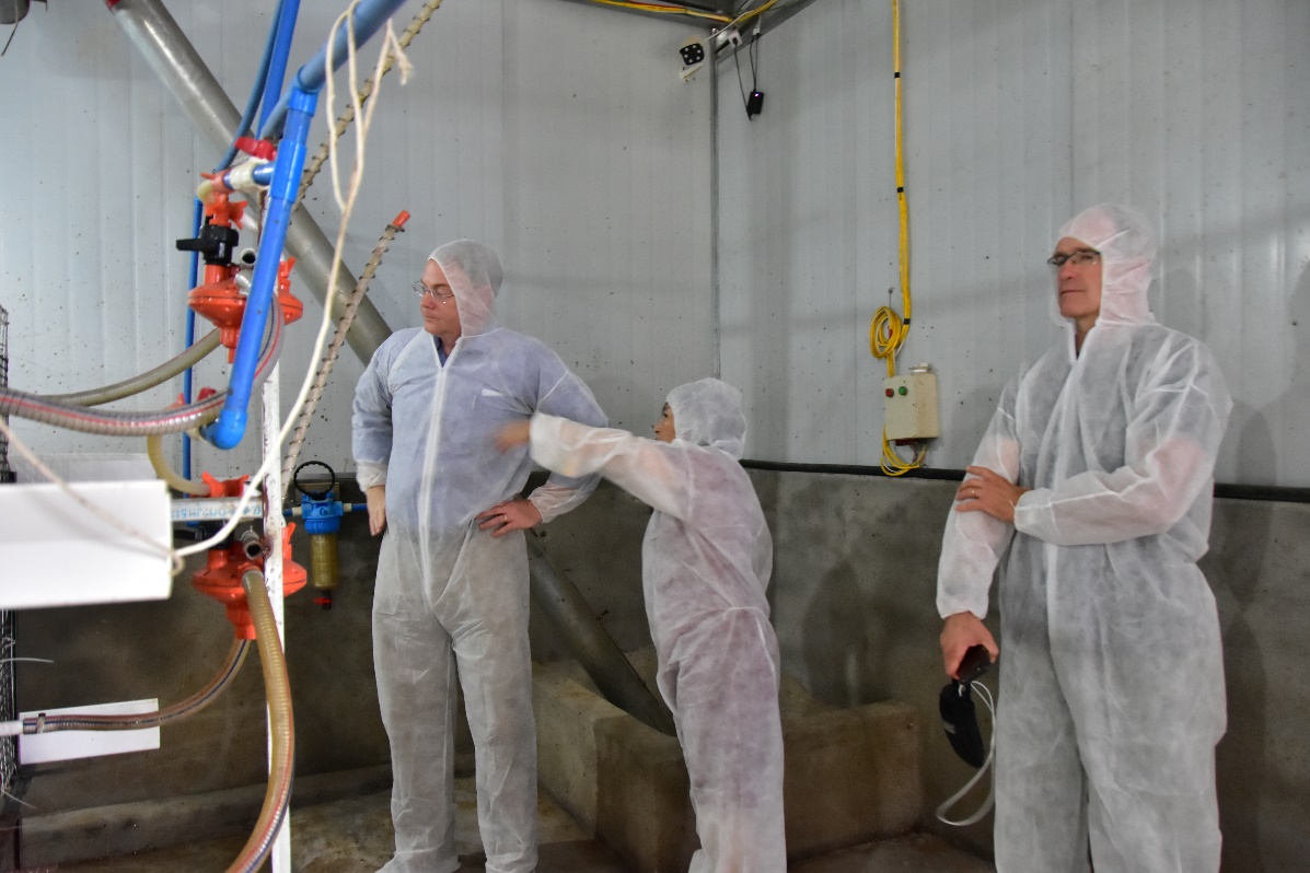 同时,Karrow教授与同期到访的另一位“111基地”专家Todd J. Applegate,在张克英教授等老师陪同下,实地参观考察了铁骑力士集团在三台绿溪优食谷的肉鸭食品加工厂和江油的标准化肉鸭笼养养殖基地,并对该基地的常见饲养问题提供了解决方案。