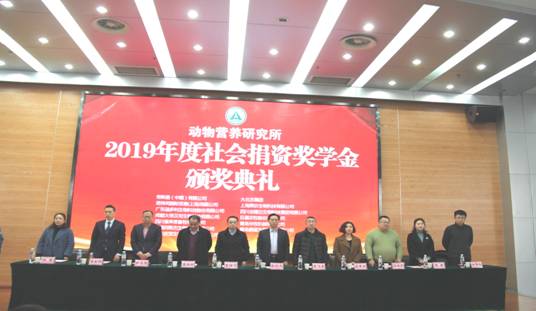 颁奖典礼在雄壮的国歌声中拉开序幕。所党委书记钟邦胜宣读动物营养研究所2019年度“帝斯曼、大北农、诺伟司、美农、溢多利、吉隆达、大帝汉克、巨星、来恩、华牧、百斯杰、蔚蓝、重庆优宝”奖学金表彰决定。随后,设奖企业嘉宾为获奖者颁发荣誉证书并合影留念。