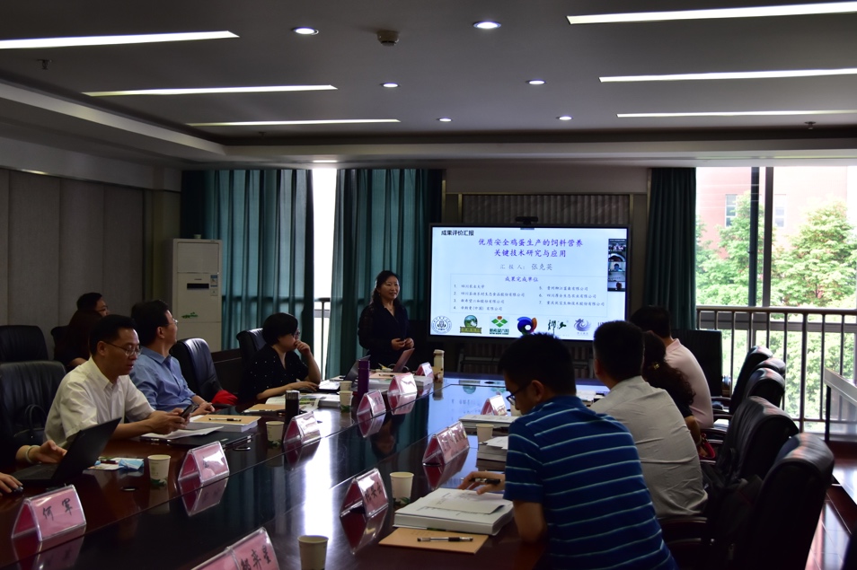 5月15日,四川省农村科技发展中心组织中国科学院亚热带农业生态研究所、中国农业科学院畜牧兽医研究所、饲料研究所、浙江省农业科学院、四川大学、四川省农业农村厅和省畜牧科学院的国内同行专家对2138cn太阳城集团动物营养研究所家禽营养研究室完成的两项科技成果进行了第三方评价。两项成果分别是家禽营养研究室与四川圣迪乐村生态食品股份有限公司等单位共同完成的“优质安全鸡蛋生产的饲料营养调控关键技术研究与应用”项目,以及家禽营养研究室和四川铁骑力士有限公司等单位完成的“肉鸭高效优质生产营养技术创新与应用”项目。会议由四川省农村科技发展中心主任王敬东主持。我校副校长陈代文教授,科技处处长曾维忠教授,营养所所长余冰教授、副所长何军教授及参与项目的课题组成员,还有部分企业代表参加了会议。