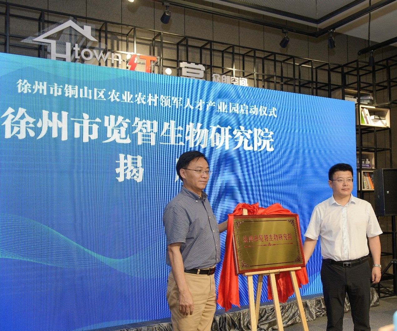 作为此次活动的一项重要议程,7月19日,陈代文、李明洲副校长一行还出席了在铜山区棠张镇举行的徐州市铜山区农业农村领军人才产业园启动和徐州市览智生物研究院揭牌仪式。