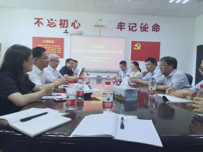 2020年8月14日-15日,在校长吴德教授和副校长陈代文教授的带领下,动物营养研究所所长余冰教授、方正锋教授、赵华教授、虞洁副教授和王建萍副教授等一行7人到南京农业大学动物科技学院交流学习,探讨学科发展。
