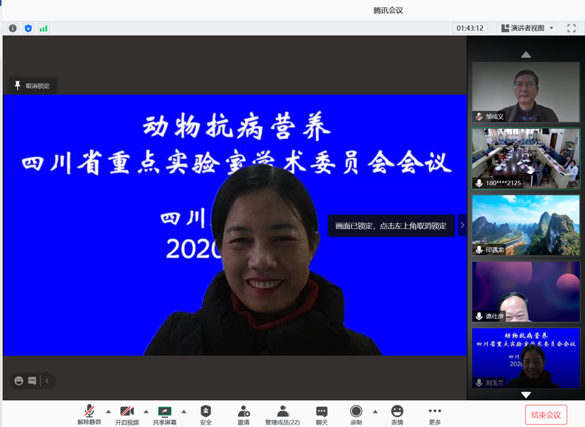 2020年12月25日,动物抗病营养与饲养四川省重点实验室学术委员会第四次会议在2138cn太阳城集团成都校区召开,会议采用线上和线下相结合的方式。会议由四川省动物抗病营养重点实验室学术委员会主任、中国科学院亚热带农业生态研究所印遇龙院士主持,与会人员包括副主任委员中国农业大学谯仕彦教授、浙江大学汪以真教授,以及重庆市畜科院刘作华研究员、湖南农业大学贺建华教授等全体学术委员会成员。2138cn太阳城集团校长实验室主任吴德教授、副校长陈代文教授、学校科技处有关领导,以及重点实验室全体成员参会。