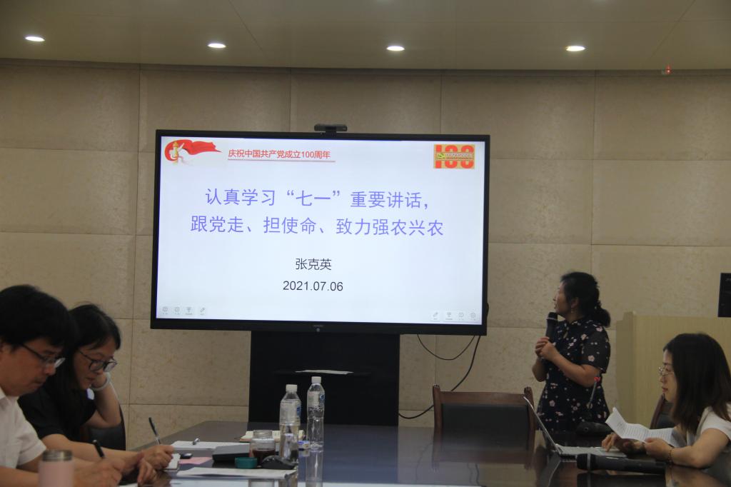 在庆祝中国共产党成立100周年大会举行后,我所积极开展学习贯彻习近平总书记在庆祝中国共产党成立100周年大会上的重要讲话的精神的活动,7月6日,动物营养研究所民盟委员,雨城区第十四届、十五届人大代表张克英教授做了“认真学习‘七一’重要讲话,跟党走、担使命、致力强农兴农”的报告。