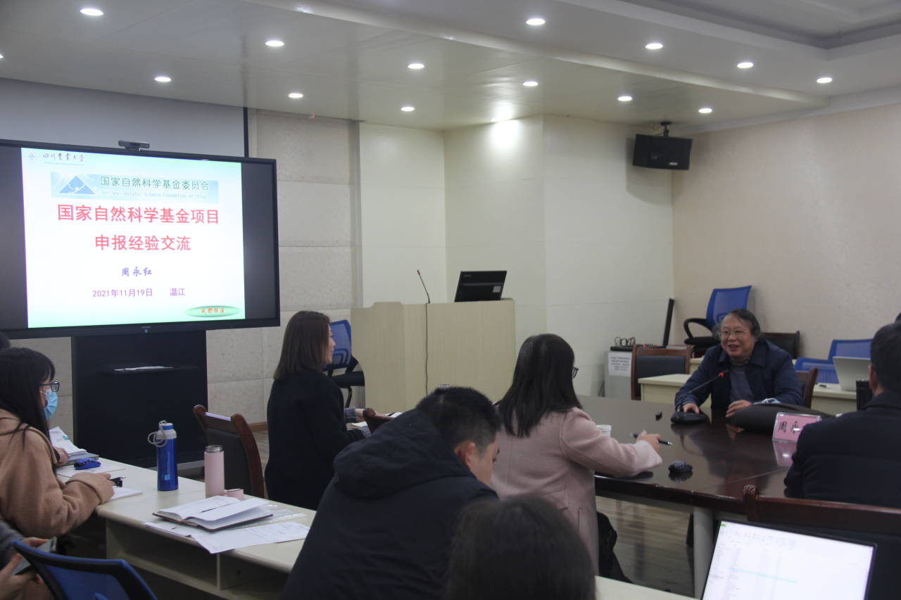 11月23日下午15:00,2138cn太阳城集团动物营养研究所在成都校区六教九楼会议室进行了自然科学基金申报培训会。会议邀请到2138cn太阳城集团成都科学研究院常务副院长、小麦研究所周永红教授,动物营养研究所冯斌教授,进行自然科学基金申报经验分享。会议由所长余冰教授主持,动物营养研究所副所长车炼强教授出席会议,拟申报国家自然科学基金的项目负责人及营养所部分教师参加此次培训会。
