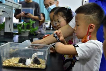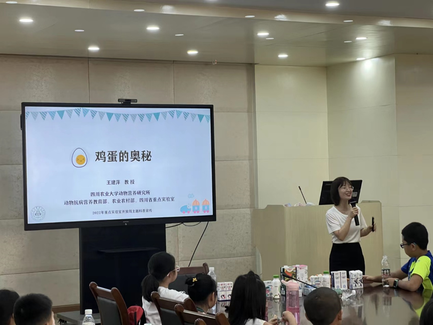本次活动同时通过微信公众号和校园网等形式线上宣传,一经发布受到社会广泛关注,中小学学生、学生家长、社会媒体和企业朋友们共400余人报名参加本次活动。本次活动以半天为一场次,共进行7场次,采用科普宣讲、有奖竞答、畜禽产品现场品鉴及重点实验室参观学习相结合的形式,增强了活动的趣味性和科普性。动物营养研究所王建萍教授、彭全辉副教授及实验室副主任汤加勇副教授等负责本次科普活动;科普报告环节,实验室给大家带来了“鸡蛋的奥妙”和“解密牛到底有多‘牛’”的科普报告,用生动有趣的讲述方式让参与人员深入了解日常生活中接触到的鸡蛋、牛奶和牛肉的来源、营养价值、选择及科学食用方法等,通过科普知识消除大众心目中畜禽产品常见的误区;同时在科普报告中,主讲人还设置了互动环节,调动小朋友们参与积极性;产品品鉴环节,大家对优质鸡蛋、牛肉、牛奶进行了观察或品鉴,科学认识了正确选择和食用畜禽产品在人们健康生活中的重要性;在参观学习环节,通过展板、实物展示、虚拟实验体验和实验操作等多种方式,让来访的小朋友们通过“学习、参观、体验”,领略动物营养与饲料科学及畜禽水产产品生产全过程, 使公众切身感受到畜牧科技创新的迷人魅力,好评不断,反响热烈。