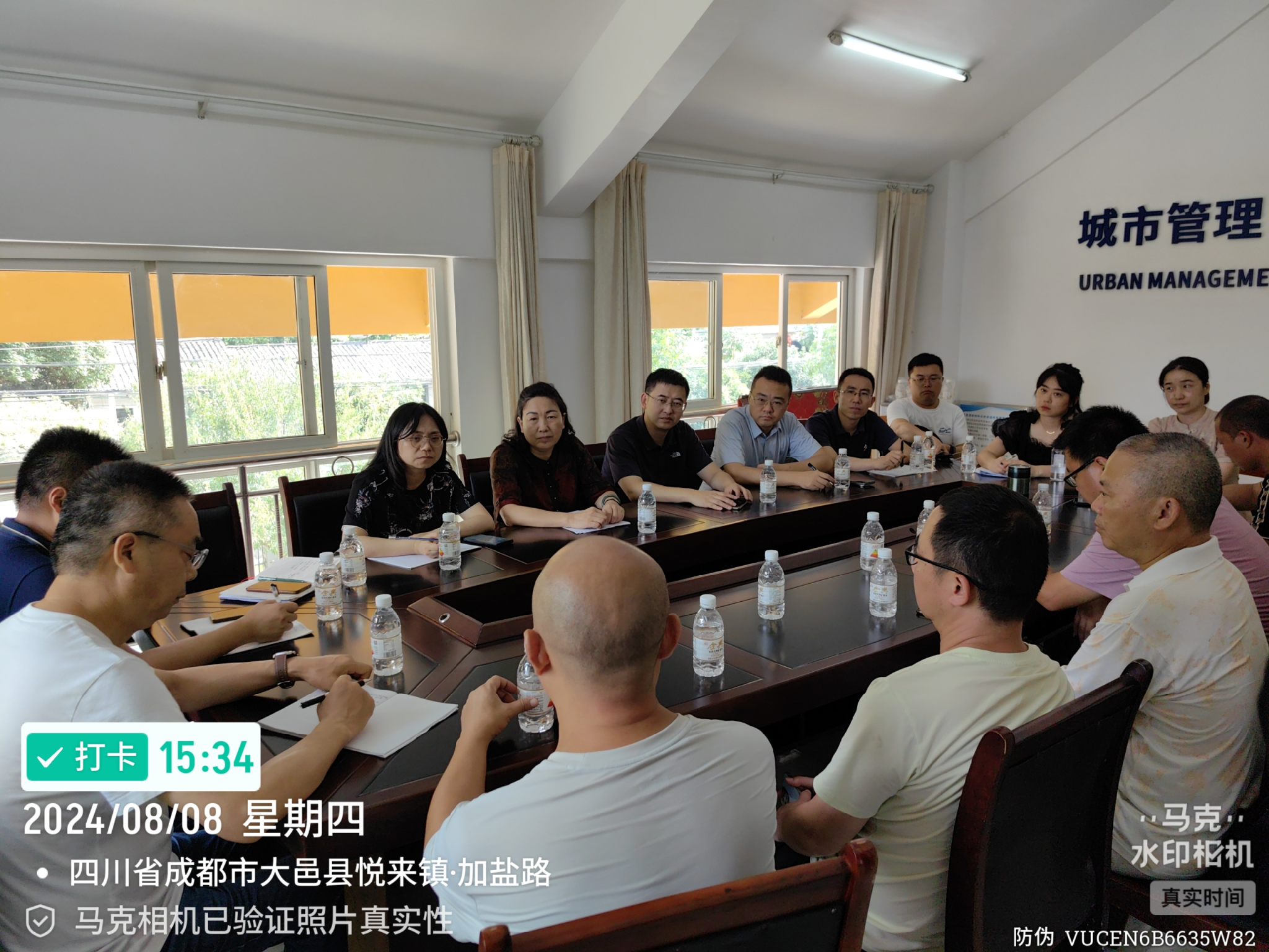 虞洁(左三)、阎辉(左四)、卓勇(左五)等教师与大邑一线生猪养殖户座谈