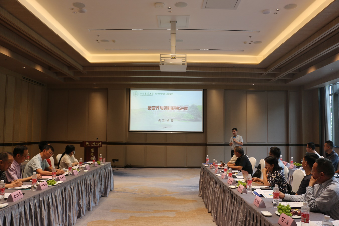 2024年8月23日,为更好地加强产教融合,促进科研成果转化,受四川省畜科集团有限公司的邀请,动物营养研究所学科带头人陈代文教授、周小秋教授、张克英教授、所长何军教授、副所长车炼强教授及各个研究室科研骨干23人与四川省畜科集团有限公司邝声耀董事长等公司业务骨干进行技术交流与研讨。