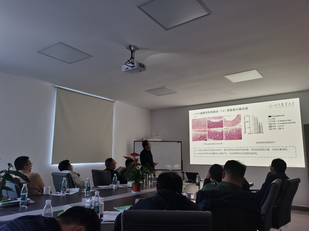 从产业趋势来看,禽肉、禽蛋已经成为大众重要的蛋白来源,家禽产业的重要性和贡献世界瞩目,现在我国家禽产业已经发展到了总量供大于求的阶段,现在家禽行业发展开始已由速度型向高质量型转变。为配合家禽养殖与饲料的技术转型,提升养殖效益,我所家禽营养与饲料研究室教师深入到四川、山东养殖与饲料企业进行技术交流与指导。白世平教授为四川乾能生物技术有限公司的企业员工近30人开展了《家禽脂肪营养与饲料应用研究进展》的专题培训,从家禽脂肪消化特点、脂肪预消化、乳化剂和脂肪酶应用等方面,详细介绍了团队近年来的研究进展;深入到山东天源集团、山东中慧集团与企业技术人员就饲料原料选择尤其是蛋氨酸来源、非常规原料利用等方面进行了深入的座谈交流,旨在解决实际问题,推动家禽饲料高效利用技术的进一步提升。