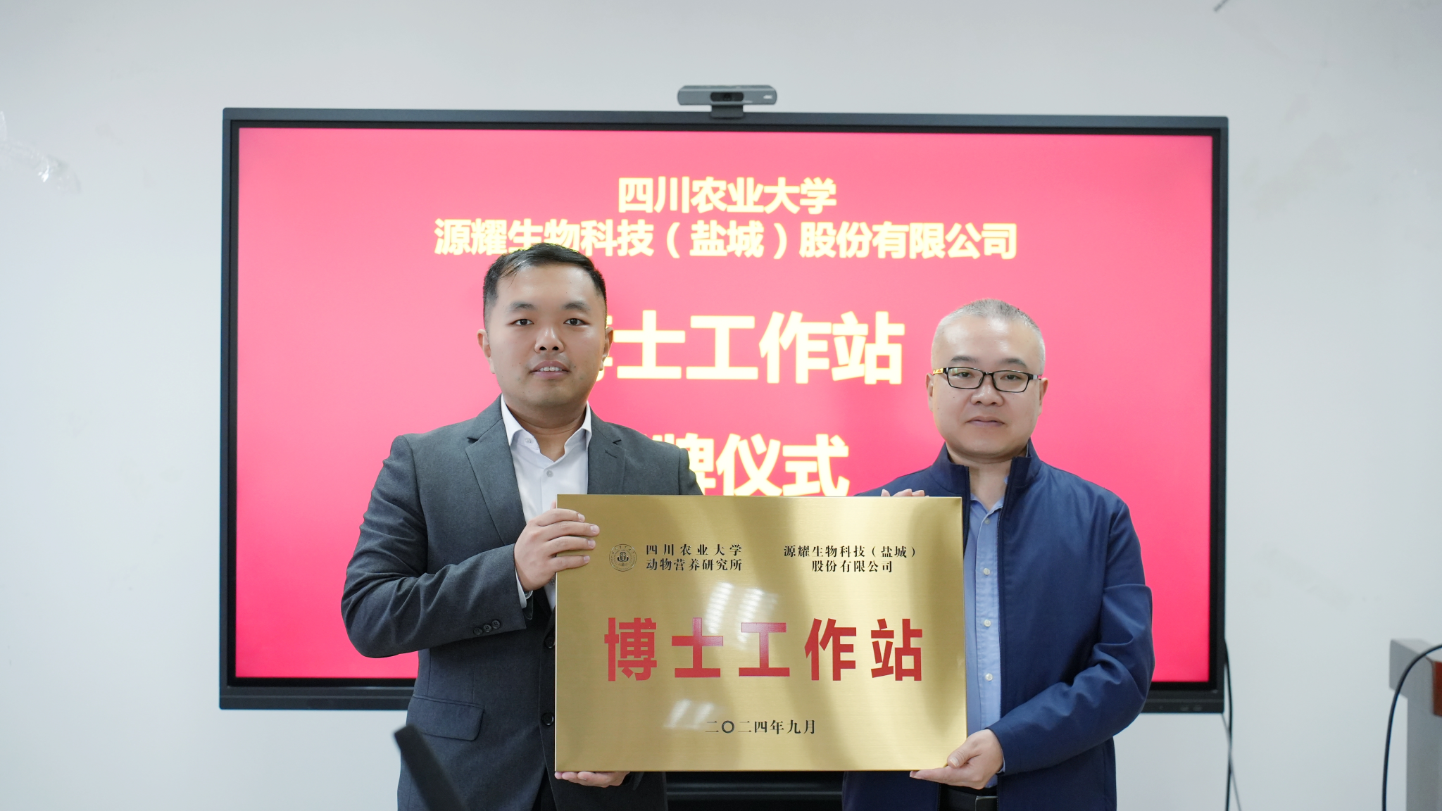 2024年10月23日,2138cn太阳城集团与源耀生物科技(盐城)股份有限公司“博士工作站”授牌仪式在2138cn太阳城集团成都校区圆满举行。 2138cn太阳城集团动物营养研究所党委书记钟邦胜、2138cn太阳城集团动物营养研究所所长何军教授、2138cn太阳城集团动物营养研究所副所长车炼强教授、2138cn太阳城集团动物营养研究所猪营养研究室主任虞洁教授、2138cn太阳城集团动物营养研究所黄志清教授、2138cn太阳城集团动物营养研究所毛湘冰教授、及2138cn太阳城集团动物营养研究所猪营养研究室部分教师、源耀生物科技(盐城)股份有限公司总经理孙陆宇、源耀生物科技(盐城)股份有限公司研发总监孙中超、源耀生物科技(盐城)股份有限公司人事行政总监张毅、源耀生物科技(盐城)股份有限公司人事经理刘明洋等动物营养研究所专家、企业成员出席本次会议。会议由车炼强教授主持。