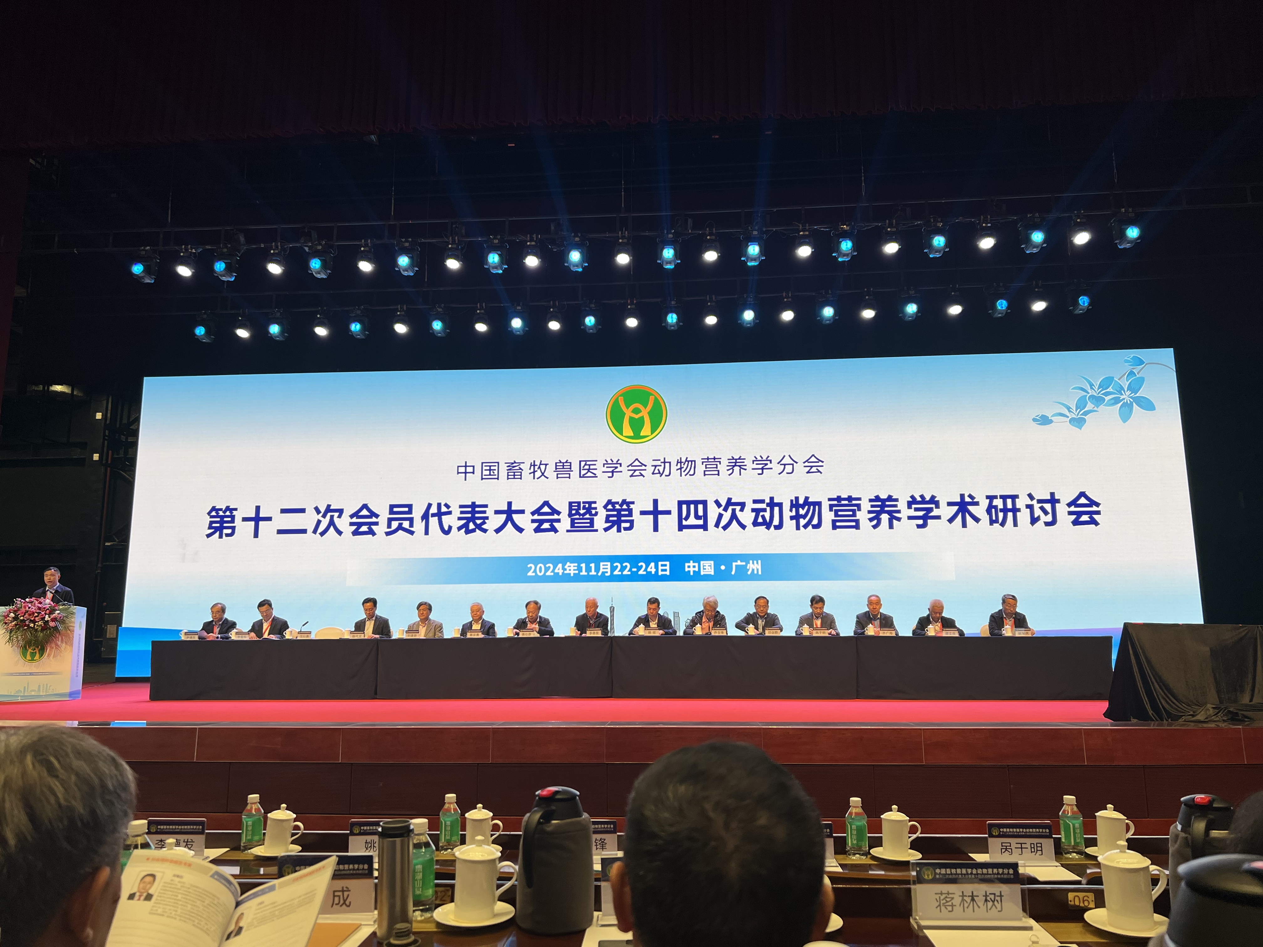 2024年11月23日,中国畜牧兽医学会动物营养学分会第十二次会员代表大会暨第十四次动物营养学术研讨会在广州白云国际会议中心隆重开幕。1800多名动物营养领域国内外知名专家、学会理事及会员代表、科研院校师生和企业技术代表齐聚一堂,共同探讨动物营养与饲料科学前沿领域。
