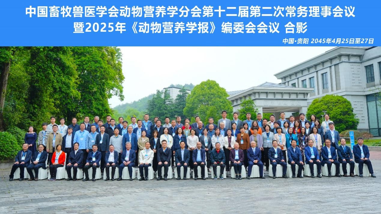 2025年4月25日至27日,中国畜牧兽医学会动物营养学分会第十二届第二次常务理事会议暨2025年《动物营养学报》编委会会议在贵阳市隆重召开。会议由中国畜牧兽医学会动物营养学分会(以下简称“分会”)主办,贵州大学动物科学学院、高原山地动物遗传育种与繁殖教育部重点实验室及贵州大学乡村振兴研究院共同承办。