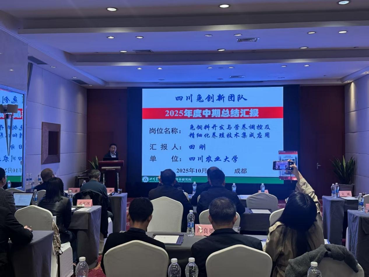 2025年10月23日,国家现代农业产业技术体系四川兔创新团队学术交流暨2025年度中期总结会在成都召开。全国畜牧总站、四川省农业农村厅科教处、四川省畜牧总站、四川省农科院相关领导,江苏省畜牧总站、扬州大学、河南农业大学等高校和科研机构的专家学者,四川兔创新团队全体岗位专家及部分成员等40余人参加了此次会议,共话兔产业高质量发展路径。