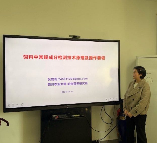 饲料常规营养成分是保障动物生长发育、健康状态及生产性能的核心基础,而其含量检测则是饲料营养价值评定的关键支撑环节。为帮助科研人员熟练掌握饲料常规营养成分检测技术,充分发挥大型分析仪器在科学研究与人才培养中的服务效能,10 月 27 日下午 14:00-18:00,营养所公共实验室吴发莉老师于雅安校区12教706教室,成功举办饲料中常规营养成分检测技术原理及操作要领专题讲座。营养所30余名学生参与学习。
