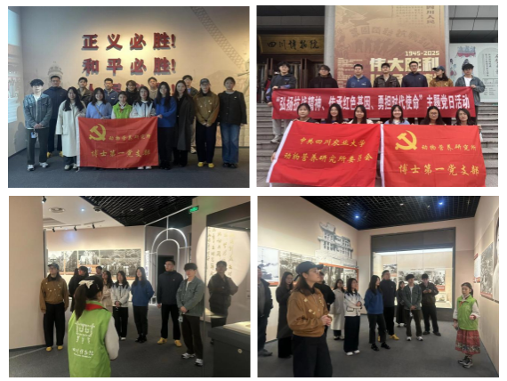 为深入学习贯彻党的二十大精神,持续推进党史学习教育常态化长效化,在中国人民抗日战争暨世界反法西斯战争胜利80周年之际,动物营养研究所博士第一党支部于2025年11月9日组织开展了以“弘扬抗战精神、传承红色基因、勇担时代使命”为主题的党日活动。通过“实地参观+感悟研讨”的形式,组织党员走进四川博物院“伟大胜利,川渝贡献”抗战主题展厅,重温烽火岁月中的家国情怀与民族脊梁,并在参观后召开专题研讨会,推动历史启迪深度融入科研实践深度融合,凝聚新时代青年党员的使命担当。