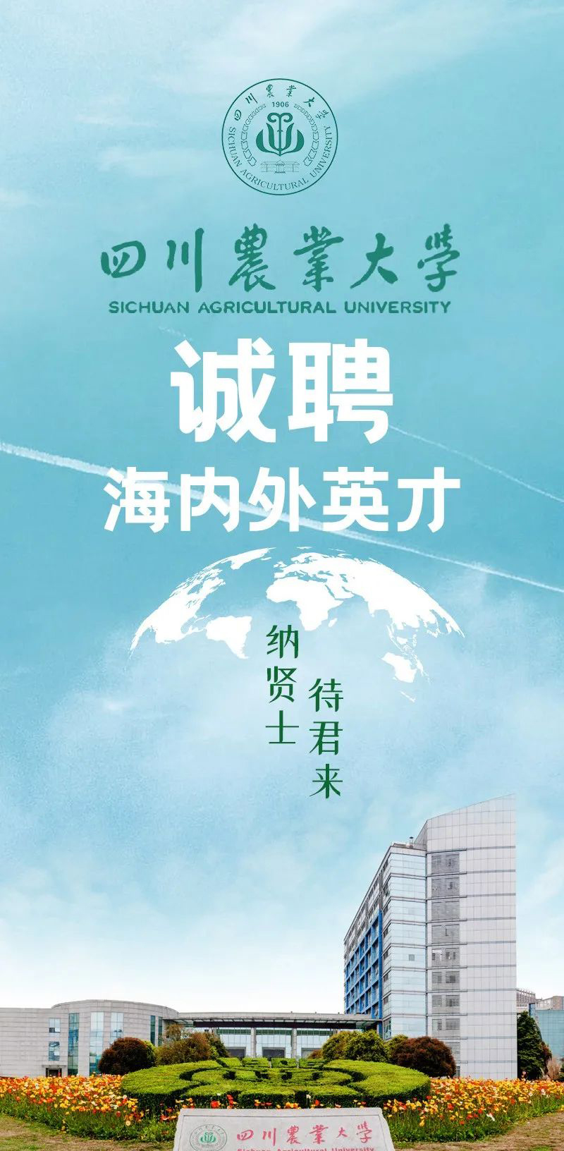 为加快推进特色鲜明、国际知名一流农业大学建设,学校面向海内外诚聘英才,同心筑梦、共创辉煌。