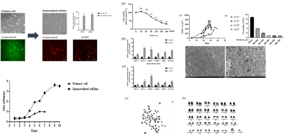 牦牛是青藏高原地区的主导畜种,也是高寒牧区经济的主导产业,我国是世界上牦牛养殖第一大国,占世界牦牛养殖总量的92%以上,有关牦牛的科学研究和产业化生产主要在我国进行。瘤胃是牦牛消化吸收、代谢、免疫屏障的重要器官。囿于牦牛瘤胃上皮细胞原代培养困难,目前关于牦牛瘤胃健康与功能的相关研究主要依靠牦牛屠宰试验和组织器官水平研究。我校动物营养研究所反刍动物营养团队使用成年牦牛瘤胃组织,采用Ⅰ用牦牛瘤胃组织究疫屏障的步消化法、组织块法和组织块消化法等不同培养方法分别获取牦牛瘤胃上皮原代细胞。为克服原代瘤胃上皮细胞传代过程中寿命受到细胞衰老等限制,用携带SV40T和hTERT基因的慢病毒感染细胞,经嘌呤毒素筛选扩大培养后获得首个永生化牦牛瘤胃上皮细胞系(SV40T-YREC-hTERT),填补丰富了牦牛源细胞系库,解决了牦牛瘤胃基础实验研究缺乏细胞系实验材料的瓶颈问题。