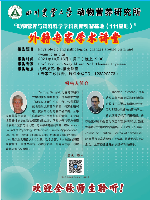“111基地”外籍专家学术讲堂—Physiologic and pathological changes around and weaning in pigs