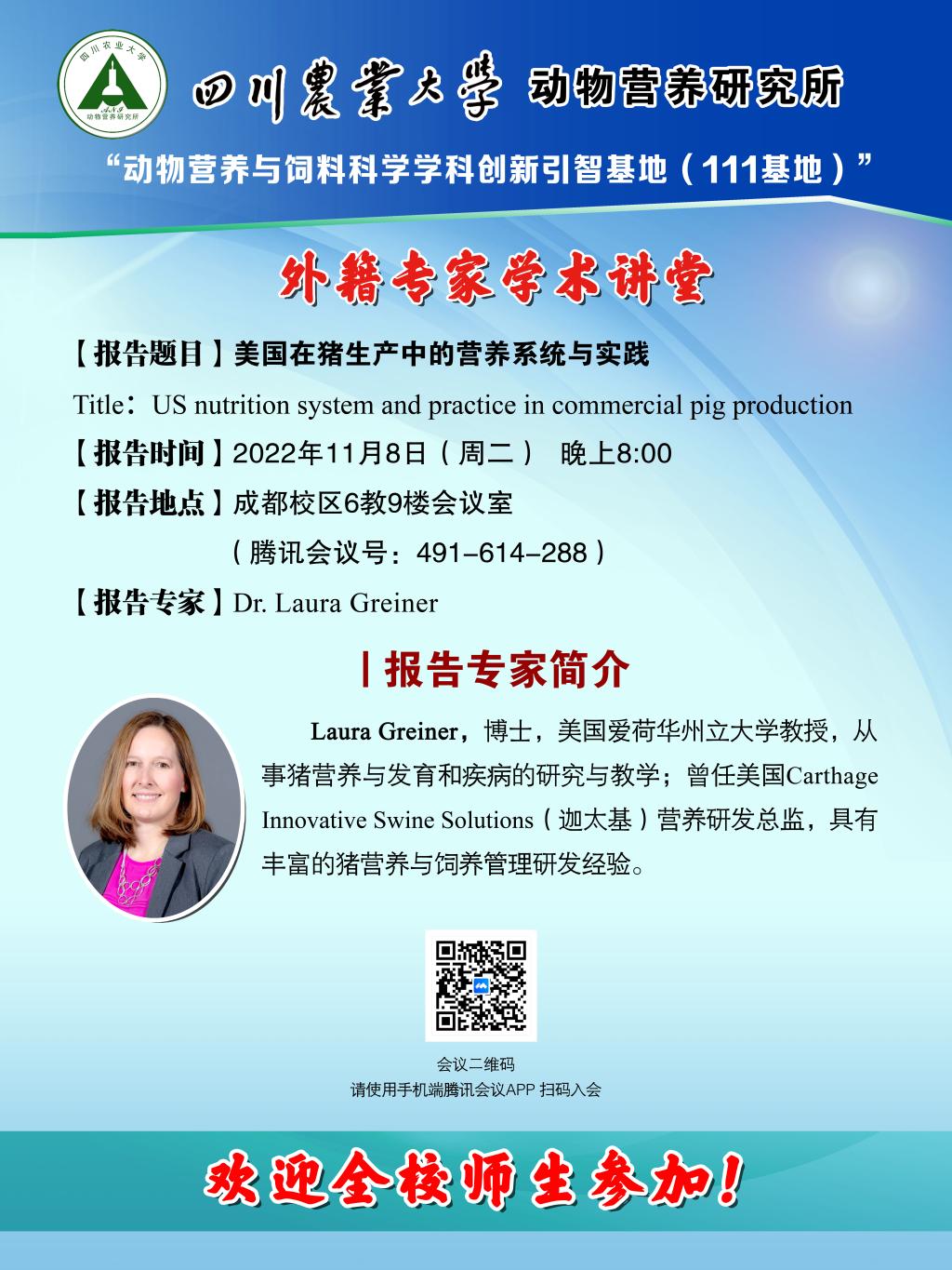 “111基地”外籍专家学术讲堂-美国在猪生产中的营养系统与实践