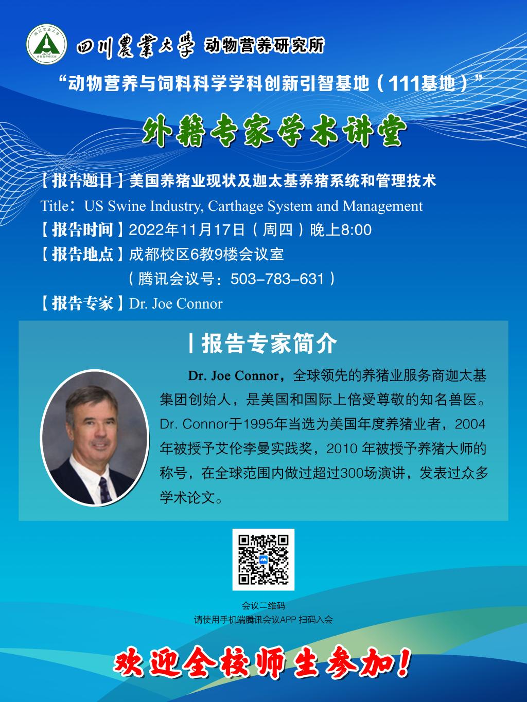 “111基地”外籍专家学术讲堂-美国养猪业现状及迦太基养猪系统和管理技术