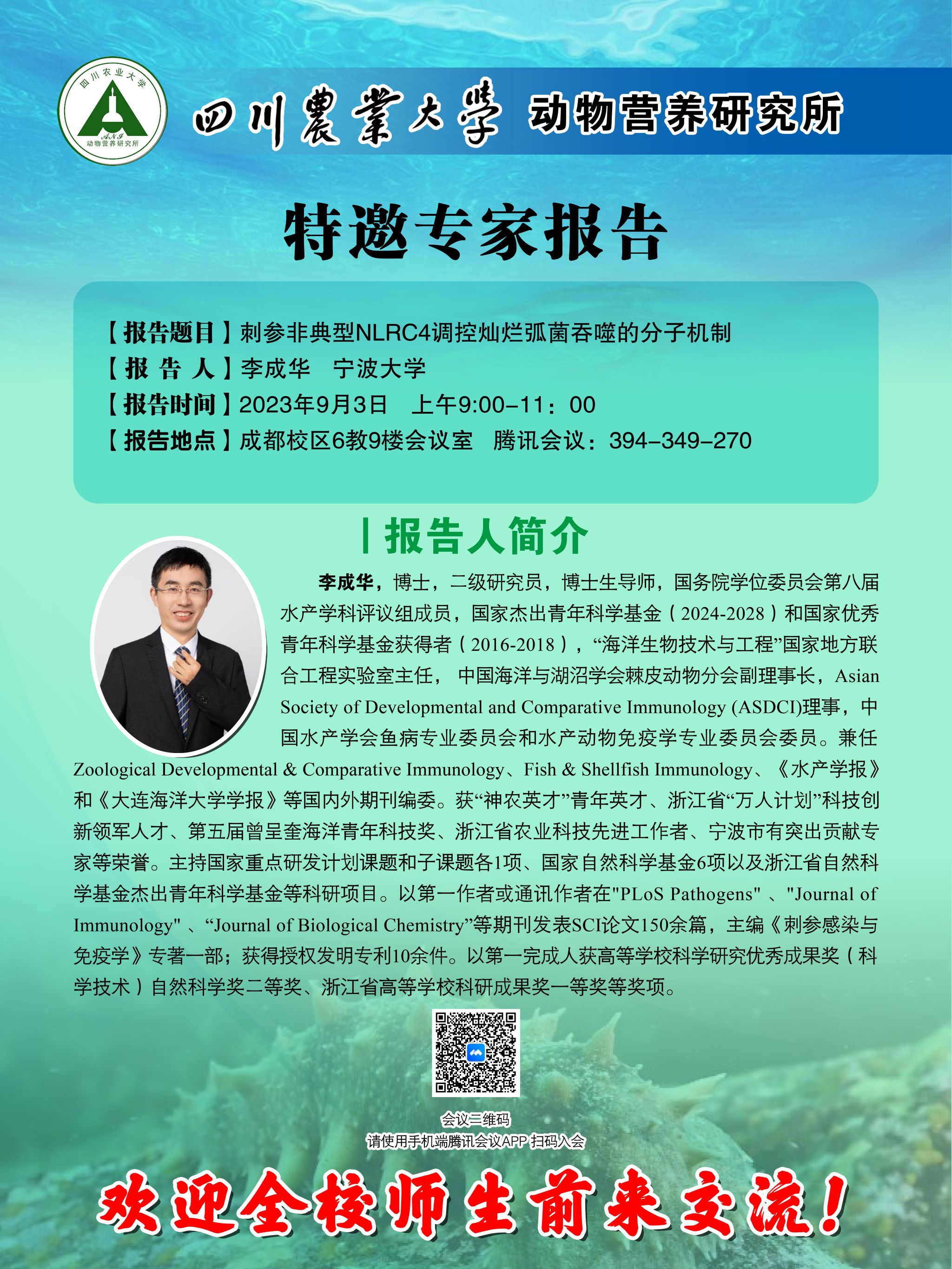 特邀专家报告-刺参非典型NLRC4调控灿烂弧菌吞噬的分子机制