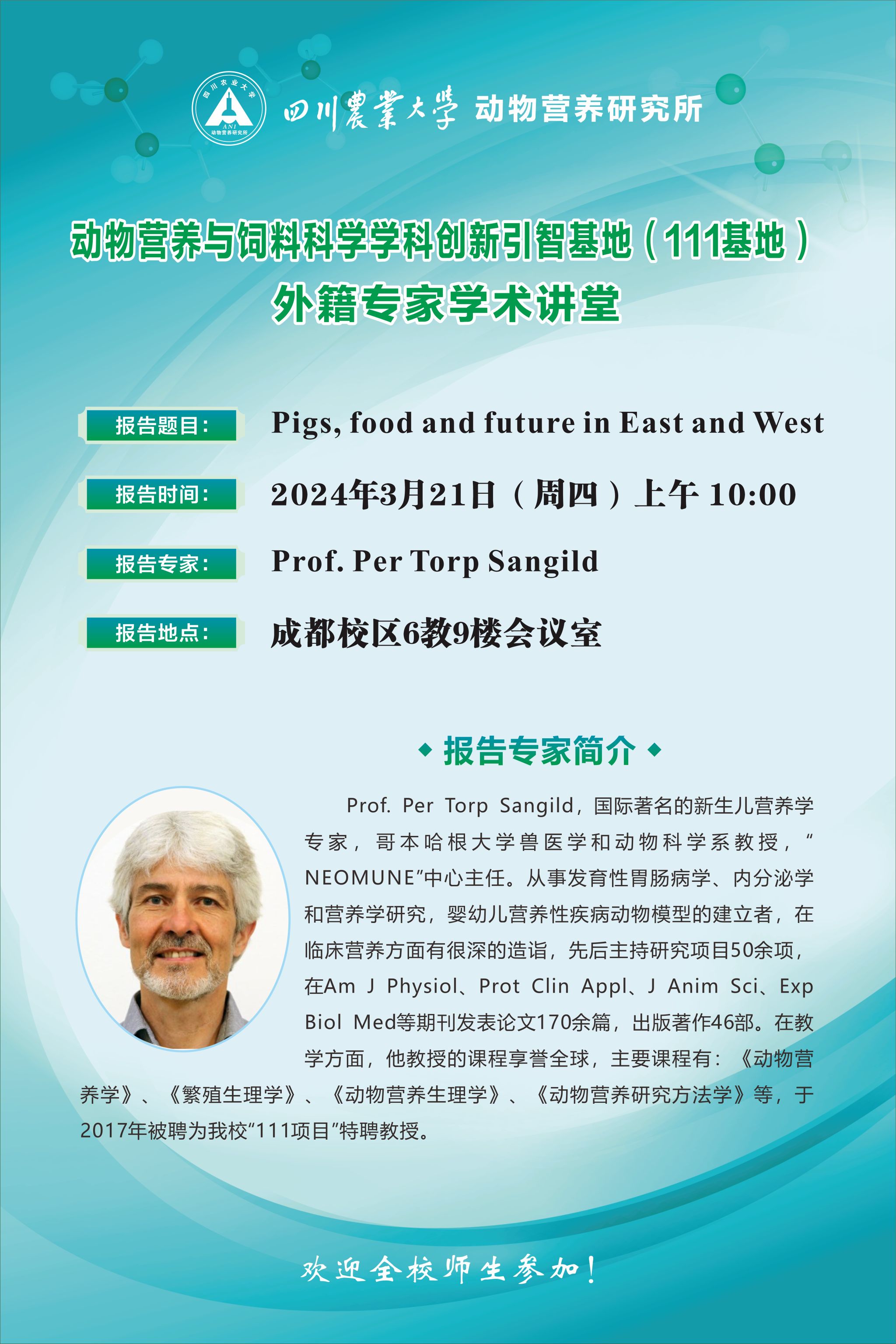 【111基地】外籍专家学术讲堂-Pigs,food and future in East and West