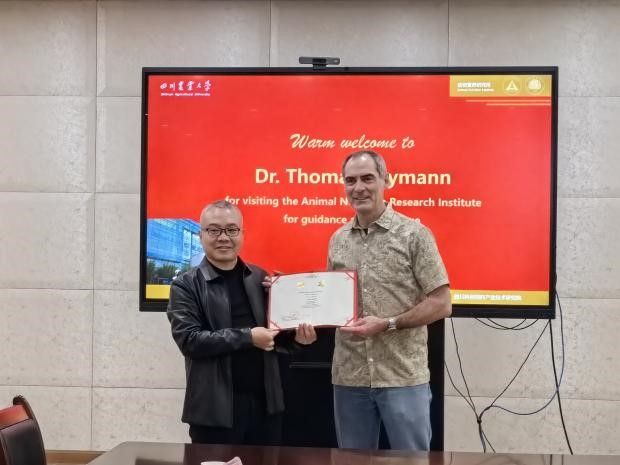 自2023年起,我所111基地考核优秀,成功进入第二轮建设期。2024年3月17日至3月23日,丹麦哥本哈根大学知名教授Per Torp Sangild和Thomas Thymann教授赴我所111基地履职。3月8日上午,所长何军教授为Thomas Thymann教授颁发了新聘书。Thomas Thymann教授分别于3月18日、19日、21日上午为我所师生呈现了题为“How to influence early life gut colonization in piglets”、“Birth complications and its effects on organ function”、“The pig as a biomedical model”的学术报告;Per Torp Sangild教授于3月21日下午带来了题为“Pigs, food and future in East and West”的学术报告。两位专家分别介绍了各自团队的最新研究成果,并结合生猪产业进行了深入探讨。会后,全所师生与两位专家进行了热烈的讨论和交流。报告之余,两位专家在111基地办公室悉心指导研究生试验方案和论文修改。3月22日,两位专家在副所长车炼强教授陪同下考察了成都博奥独立医学实验室、成都医学城三医创新中心和成都农高创新中心,对双方未来合作提出了建议和期望。
